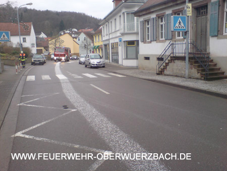 Lage: Ölspur (Breite ca. 20 cm, Länge: ca. 1000 m) in der Hauptstr. und Rittersmühle (in beiden Fahrtrichtungen)